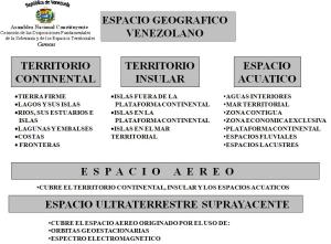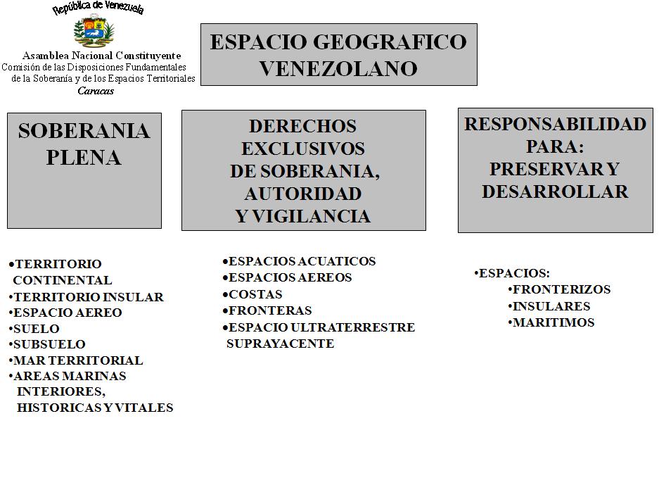 La nueva concepción del espacio geográfico dela República, amplía la visión de soberanía y delimita con mayor precisión el campo de aplicación de esa soberanía; ese espacio geográfico contempla: el Territorio Continental, el Territorio Insular, el Espacio Acuático, el Espacio Aéreo y el Espacio Ultraterrestre Suprayacente.
