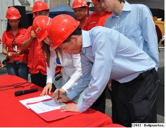 Caracas, 13 de julio de 2012.- “En estos momentos vamos a proceder a firmar el acta de inicio de esta obra de gran envergadura con la hermana República de China, estamos rodeados de los trabajadores, y de toda la maquinara de Bolivariana de Puertos que va a permitir concretar este proyecto de recuperación del terminal portuario de Puerto Cabello”.