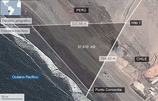 En tanto que la canciller de Perú, Eda Rivas, formuló que «vamos a tener unos 300 metros de costa seca. Si bien no es usual, hay 6 casos en el mundo, por diversas razones, donde hay costa seca».