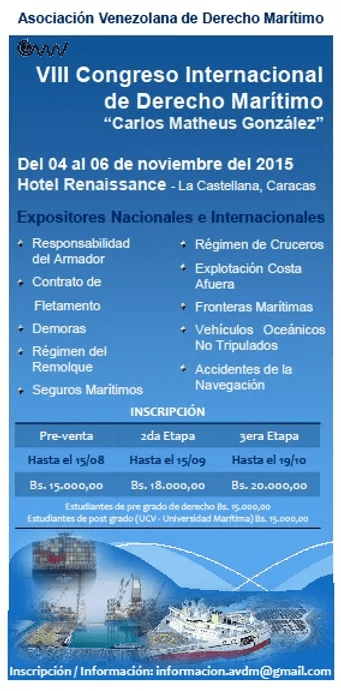 En el marco de la VIII CONGRESO DE DERECHO MARÍTIMO EN HOMENAJE A CARLOS MATHEUS GONZÁLEZ, llevado a cabo entre el 04 al 06 de noviembre del 2015, Organizado por la Asociación Venezolana de Derecho Marítimo (AVDM) para compartir experiencias y conocimientos de reconocidos especialistas en la materia, tuve la oportunidad de dictar la siguiente exposición, la cual creo oportuna la ocasión para republicarla.