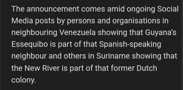 «La decisión del Gobierno guyanés nace por los mapas publicados en redes sociales por personas y organizaciones en Venezuela y Surinam que indican que el Esequibo es parte del país de habla hispana y el Nuevo Río es parte de la antigua colonia holandesa» indica el  @demwaves